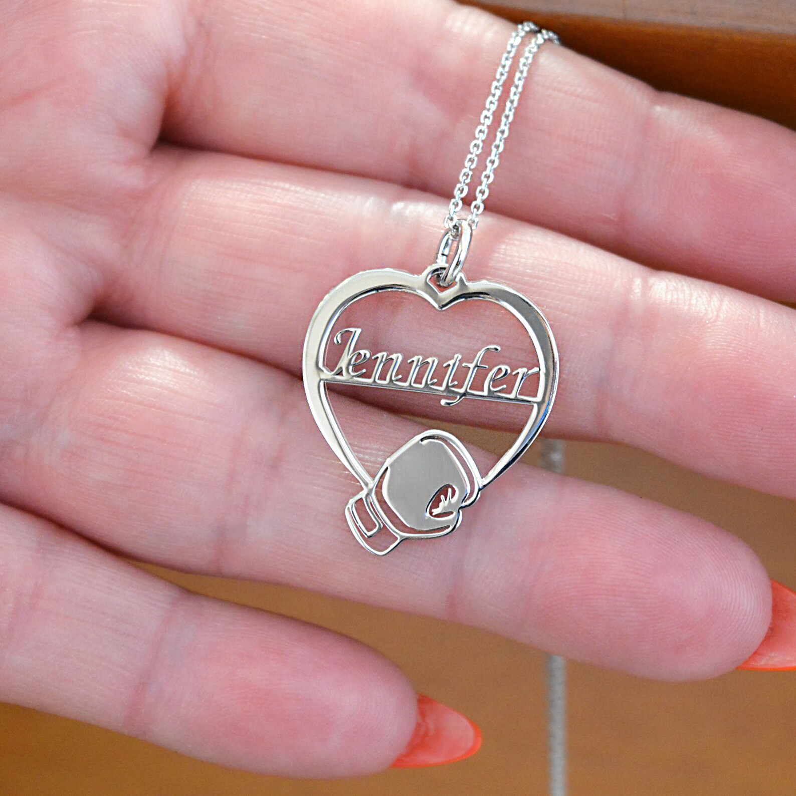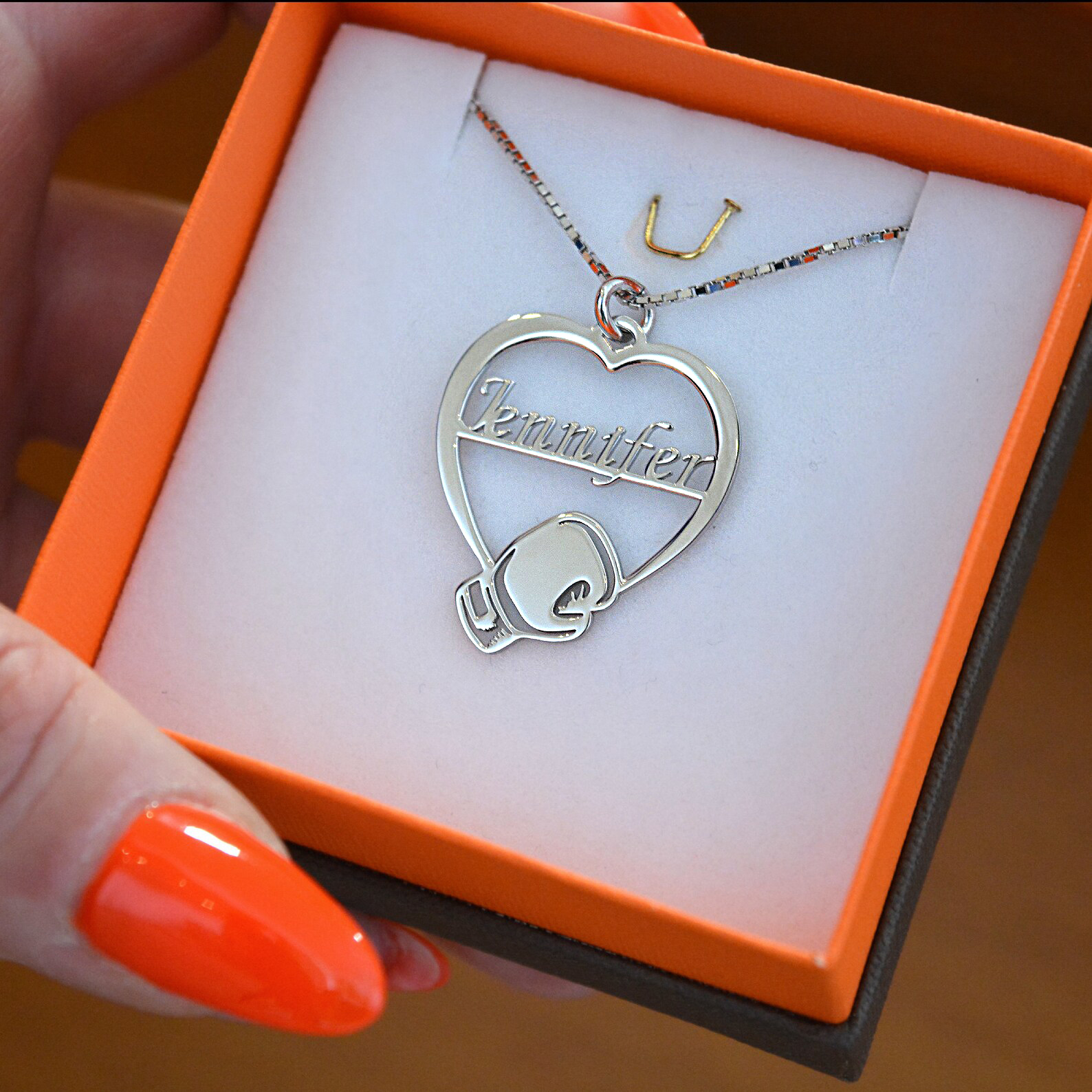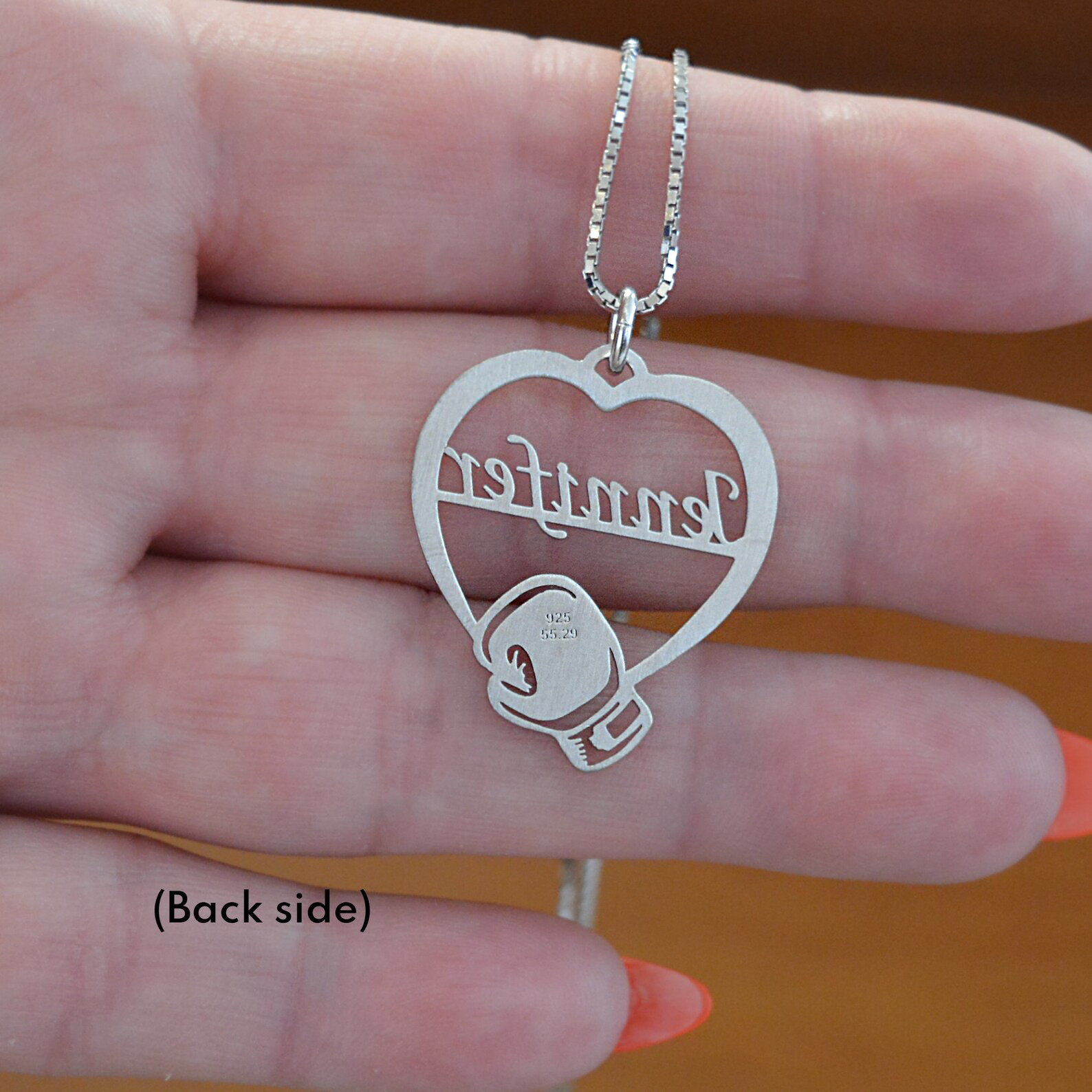 Ένα ιδιαίτερο δώρο που θα εκτιμήσει κάθε αθλήτρια της Πυγμαχίας. Ασημένιο μενταγιόν καρδιά με γάντι μποξ.