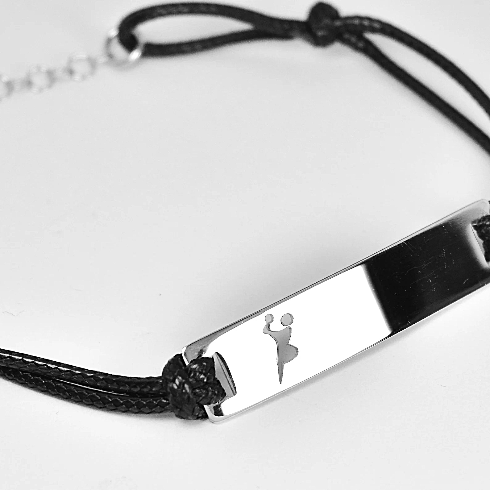 Ένα κόσμημα υψηλής ποιότητας, με θέμα το Handball, προορισμένο να σας συντροφεύει σε κάθε σας δραστηριότητα. Το μήκος του βραχιολιού είναι 20cm + 3cm προέκταση. Οι διαστάσεις της ταυτότητας είναι 35x10mm.