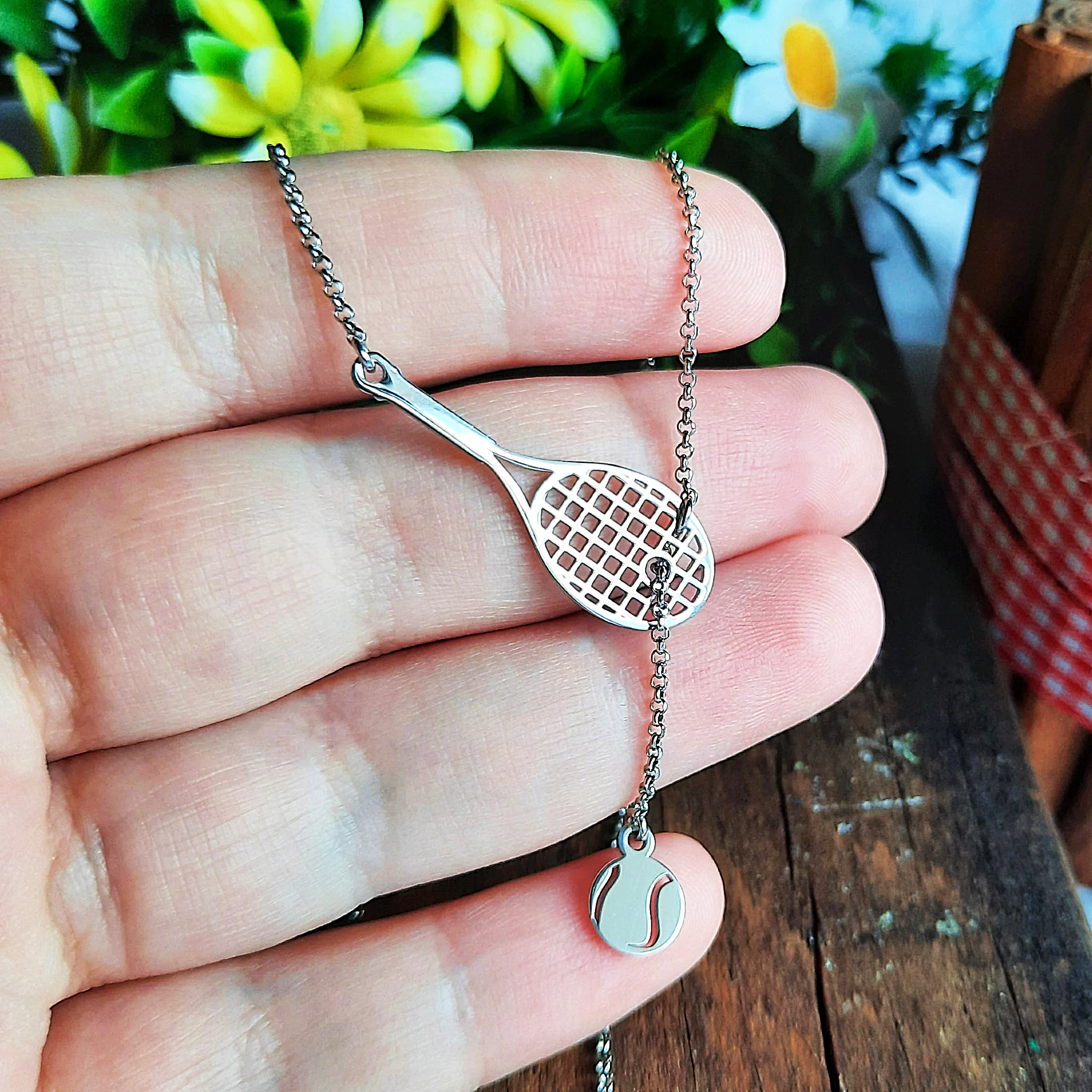 Ασημένιο κολιέ με σχέδιο ρακέτα και μπάλα του Tennis TNS27