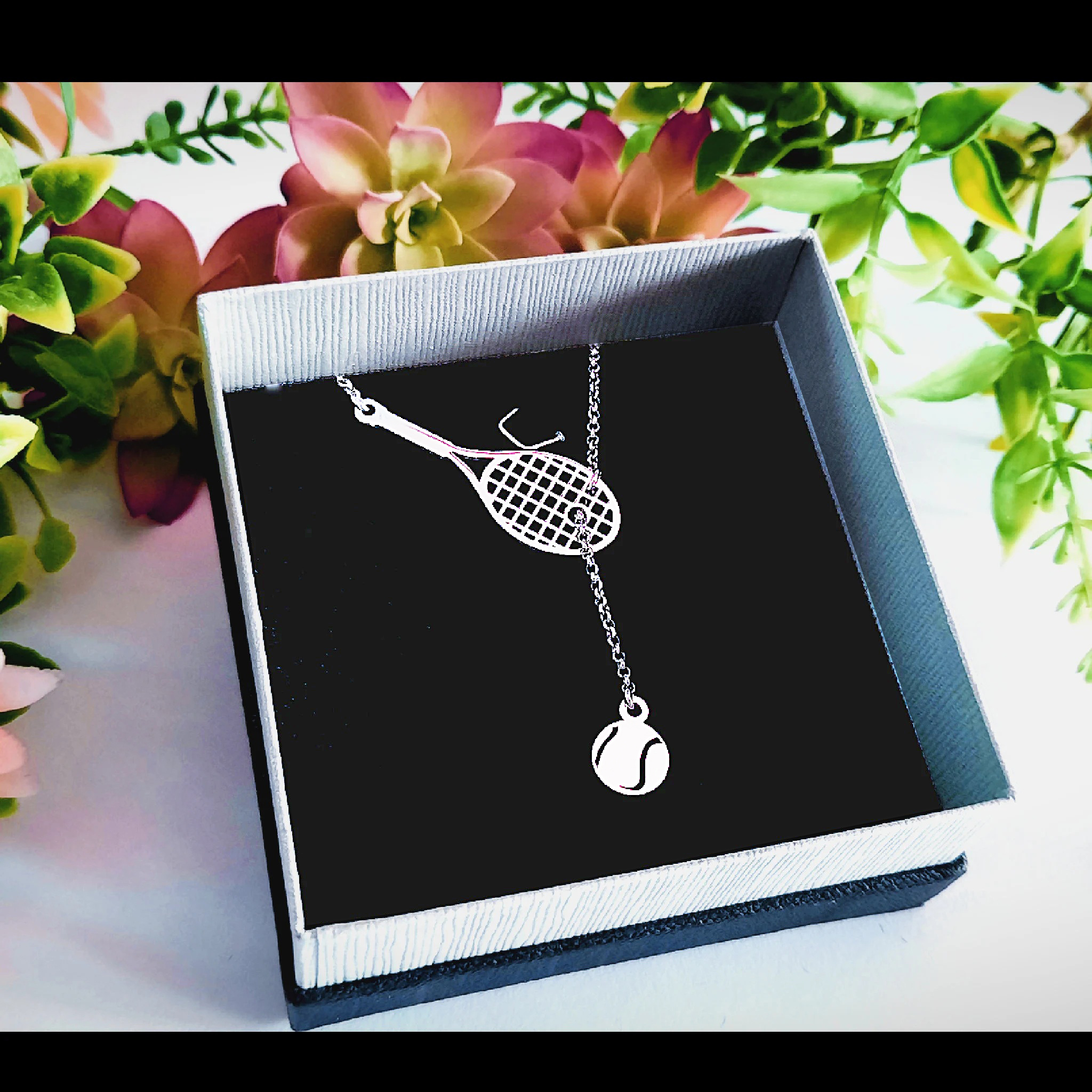 Μοναδικό κόσμημα με κομψό σχεδιασμό που θα σου χαρίσει ξεχωριστές εμφανίσεις! Ασημένιο κολιέ με σχέδιο ρακέτα και μπάλα του Tennis. Η ιδιαιτερότητα του είναι πως η μπάλα του τένις περνάει μέσα από τη ρακέτα δημιουργώντας ένα υπέροχο αποτέλεσμα!