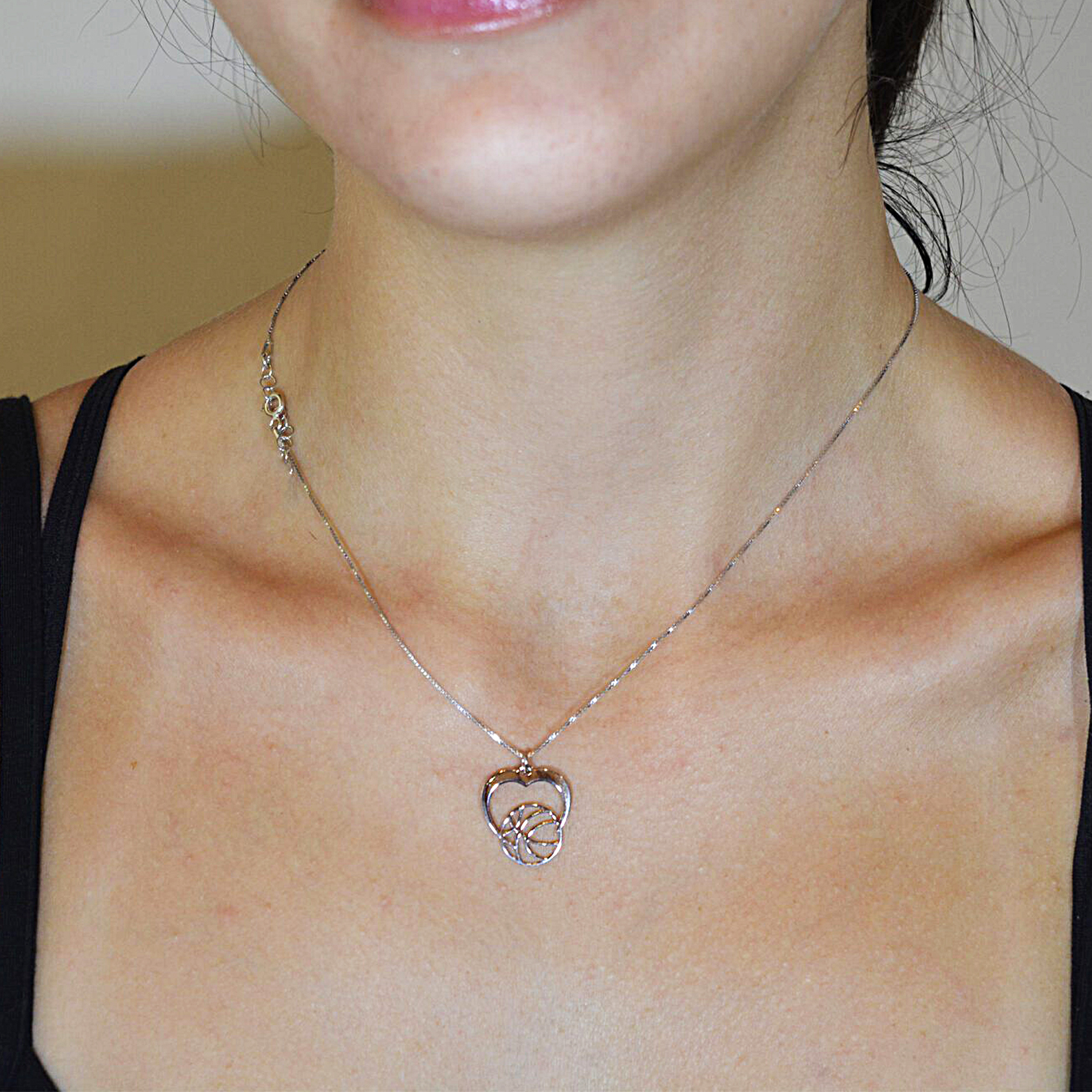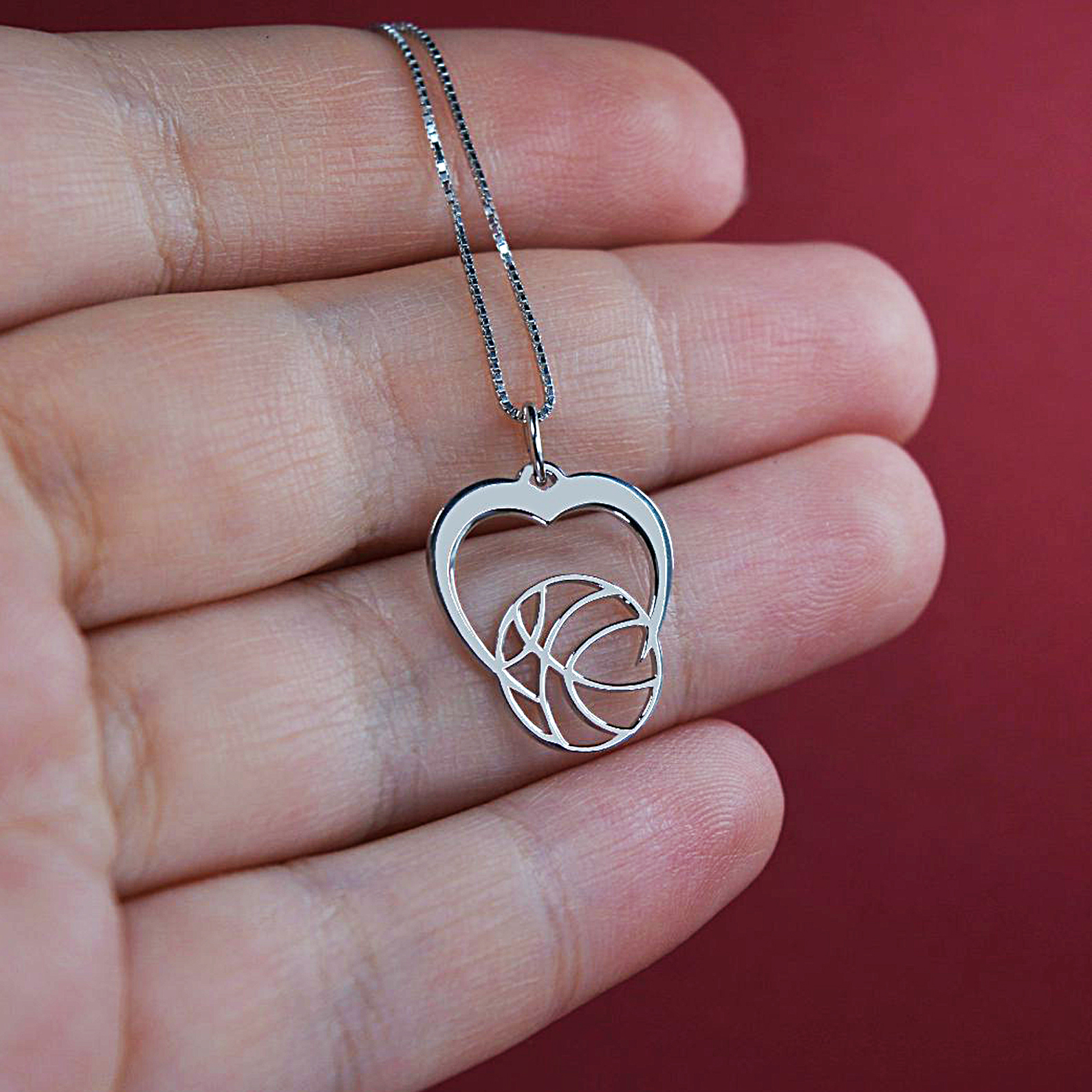 Ασημένιο μενταγιόν καρδιά με μπάλα του μπάσκετ BB01
