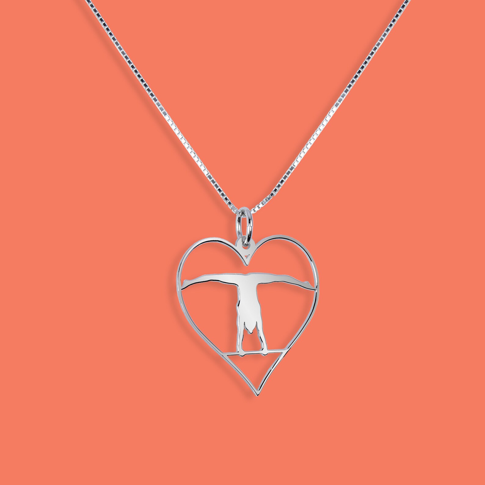 Ξεπέρασε τον εαυτό σου φορώντας αυτό το ιδιαίτερο κόσμημα που θα σε κάνει να εντυπωσιάσεις! Ασημένιο μενταγιόν με γυναικεία φιγούρα αθλήτριας της ενόργανης γυμναστικής, να εκτελεί άψογα τόσο τεχνικά όσο και αισθητικά άσκηση πάνω σε μονόζυγο.
