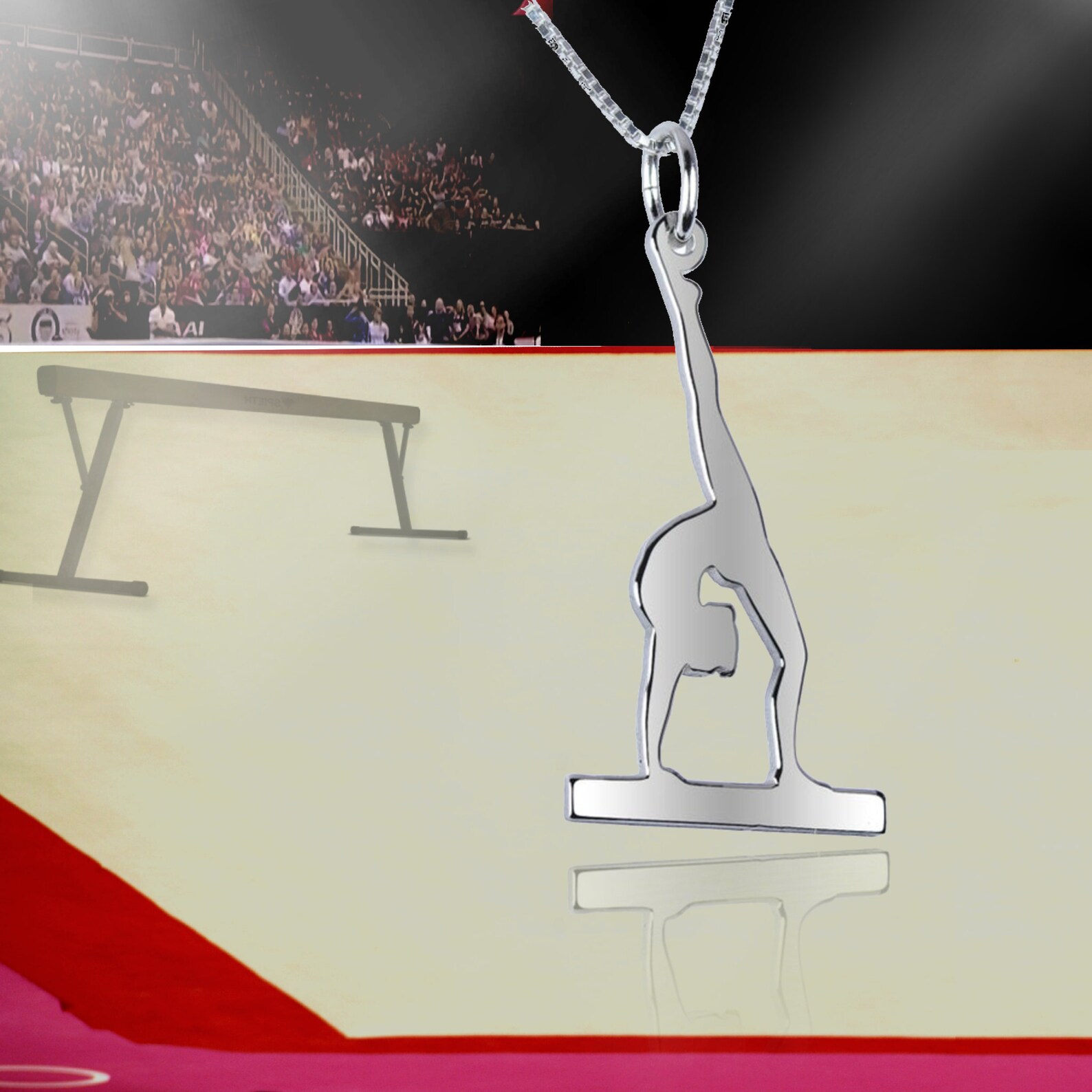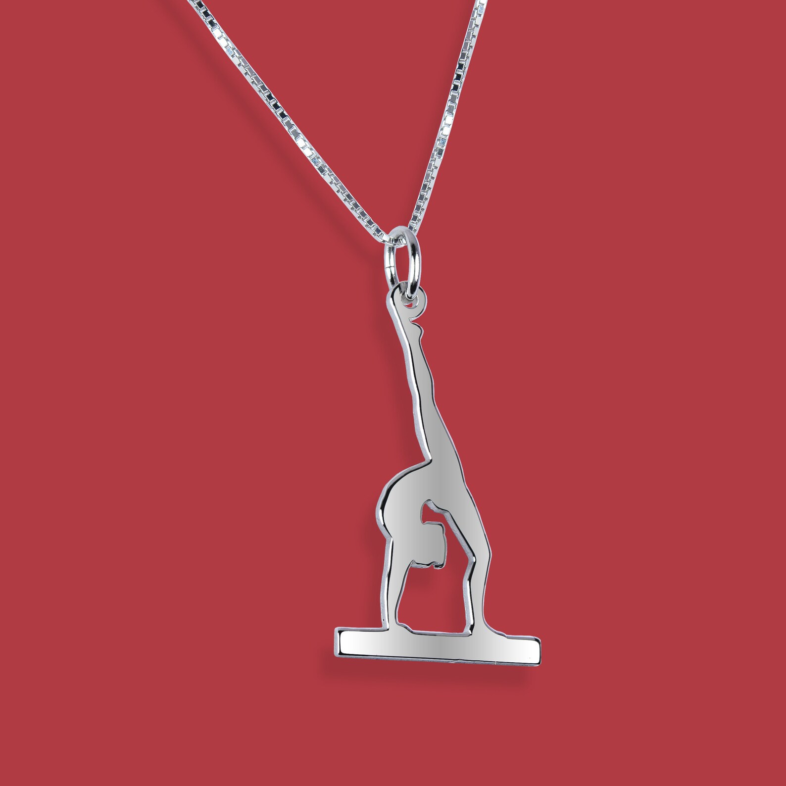 Φόρεσε το και κλέψε όλες τις εντυπώσεις! Είναι το κόσμημα που ποτέ δεν θα μετανιώσεις που αγόρασες! Ασημένιο μενταγιόν με γυναικεία φιγούρα αθλήτριας ενόργανης γυμναστικής, η οποία βρίσκεται πάνω σε δοκό ισορροπίας.