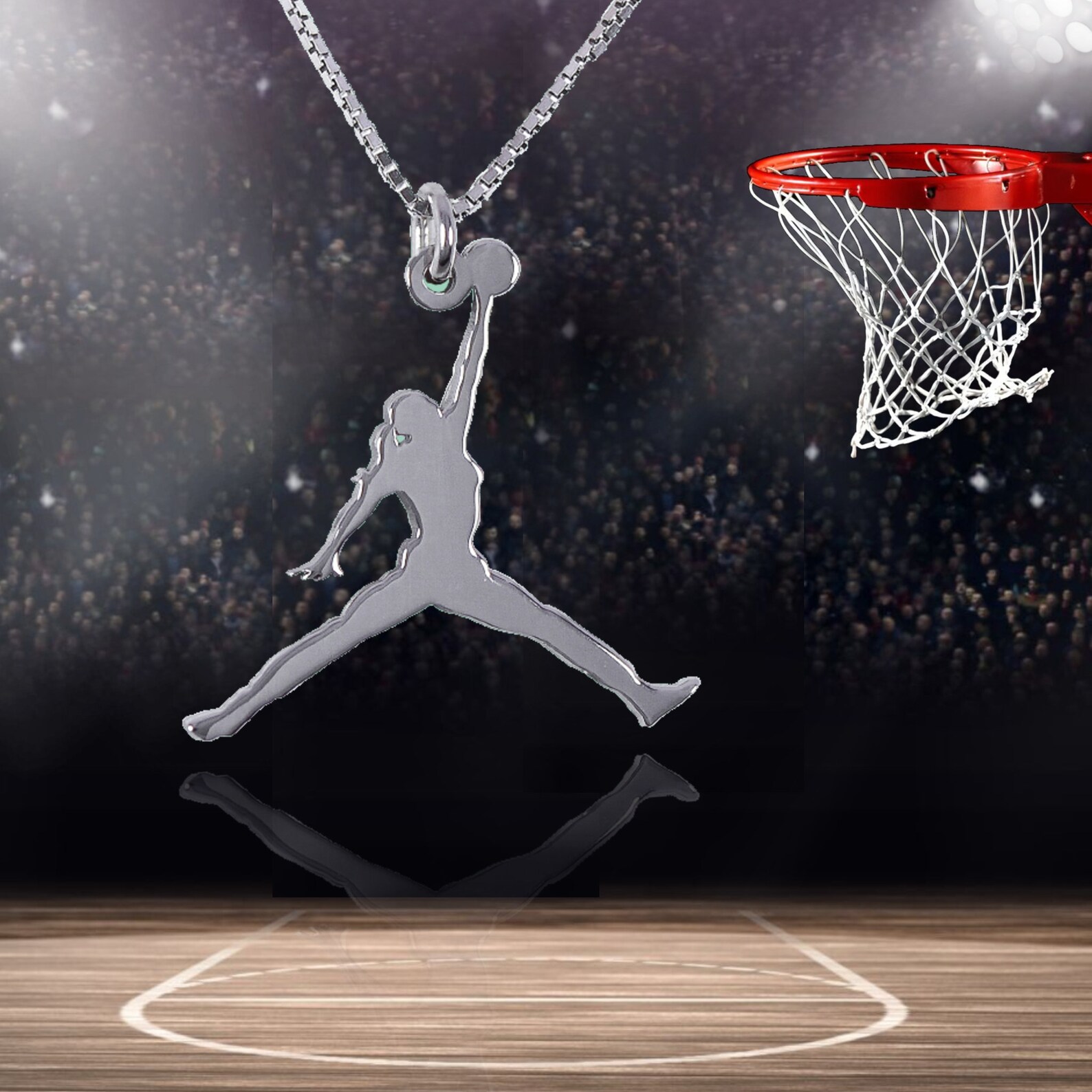 Ασημένιο μενταγιόν με φιγούρα “Μπασκετμπολίστρια” σε θέση Τζόρνταν BB05