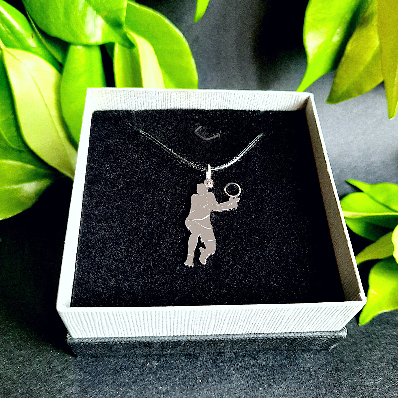 Χαραγμένο με εξαιρετική λεπτομέρεια, κόσμημα που δεν θα θέλεις να αποχωριστείς!Ασημένιο μενταγιόν, στο οποίο απεικονίζεται ανδρική φιγούρα Τενίστα, που προετοιμάζεται να εκτελέσει κτύπημα με τα δύο χέρια και με λυγισμένα πόδια.