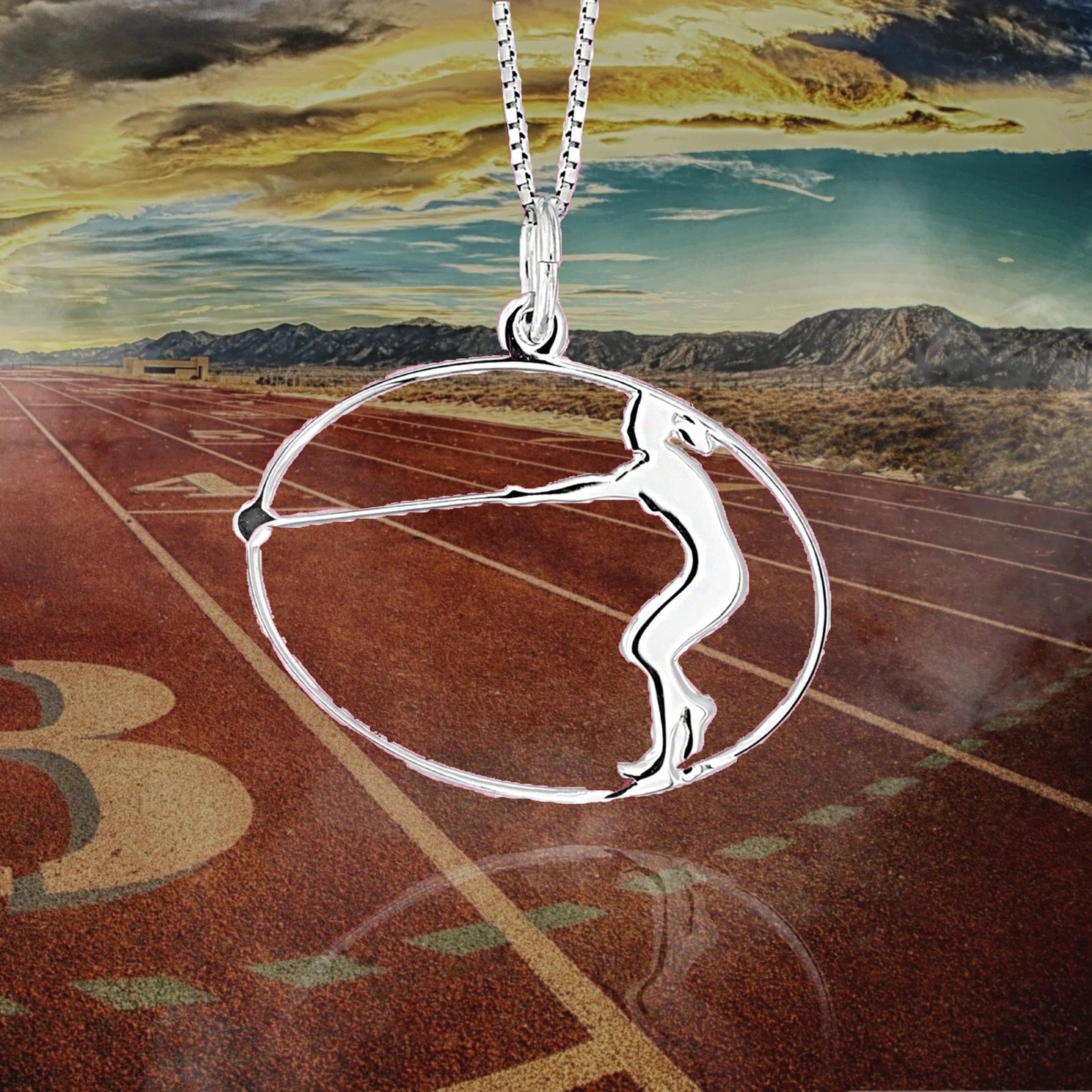 Ιδιαίτερο κόσμημα που δείχνει κοπέλα σφυροβόλο σε κίνηση. Υπέροχη σκέψη για δώρο σε κάποια φίλη σου που λατρεύει το στίβο ή ακόμα και στον ίδιο σου τον εαυτό!