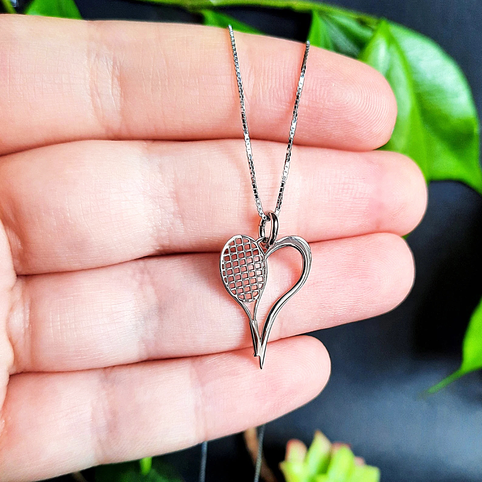 Iδανικό για εκείνους που η καρδιά τους είναι αφιερωμένη στο Tennis. Ασημένιο μενταγιόν που το μισό του μέρος απεικονίζει καρδιά και το άλλο μισό ολοκληρώνεται σε σχήμα ρακέτα του τένις με εξαιρετική λεπτομέρεια!
