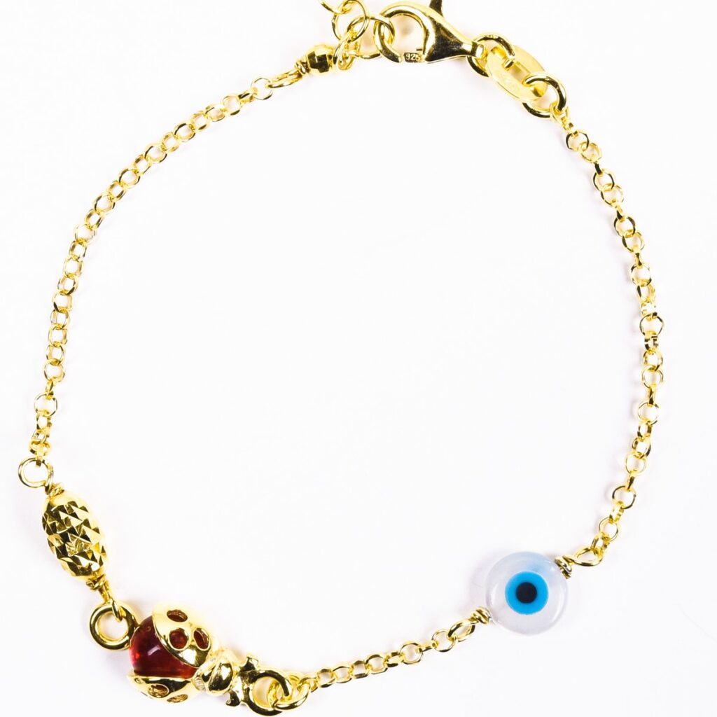 Ασημένιο παιδικό βραχιολάκι με πασχαλίτσα και ματάκι MB623