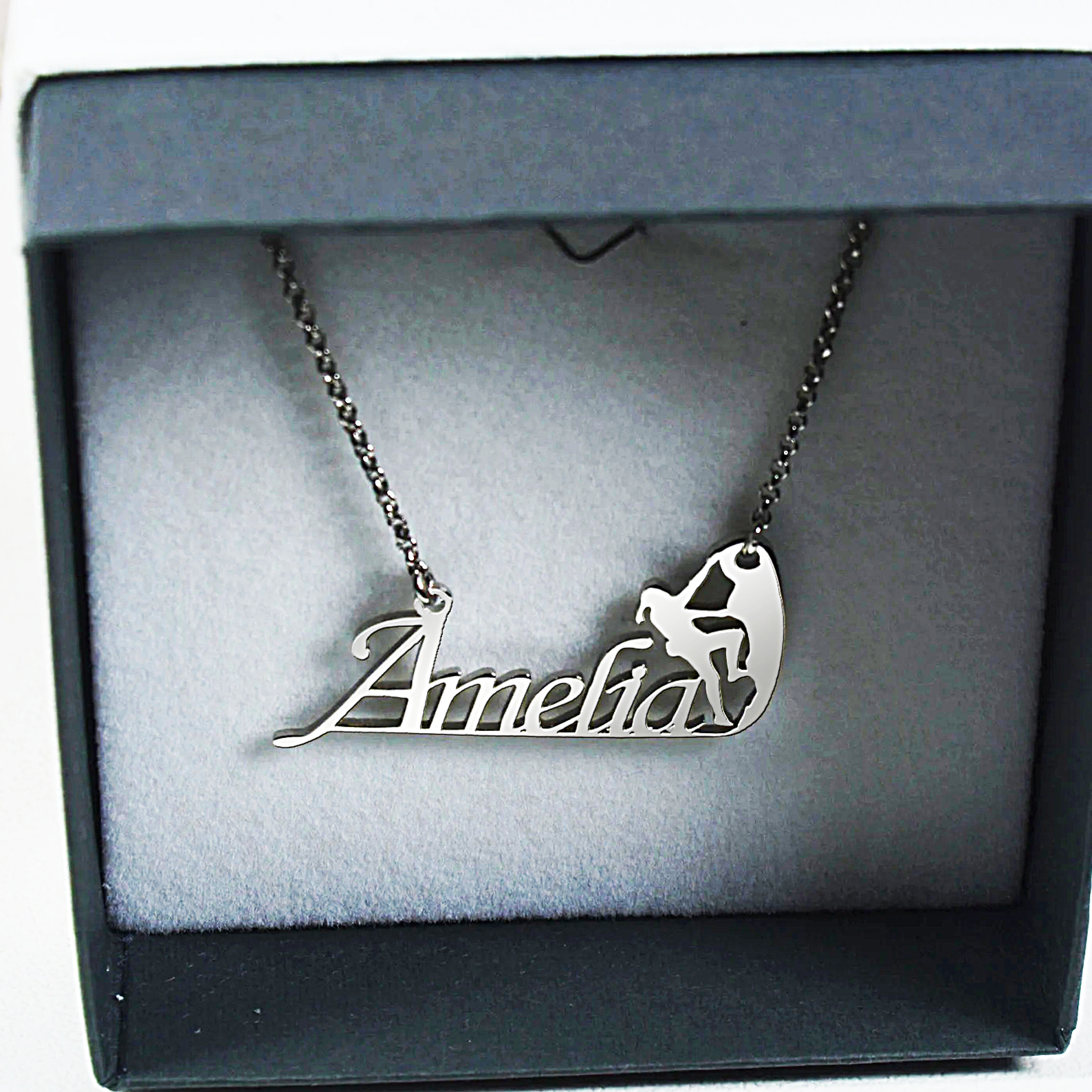 Ασημένιο προσωποποιημένο κολιέ με θέμα την αναρρίχηση .