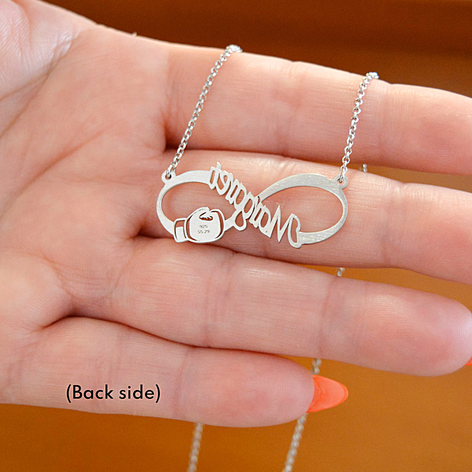 Ασημένιο προσωποποιημένο κολιέ με το σύμβολο του απείρου και γάντι του Box BXGPS13